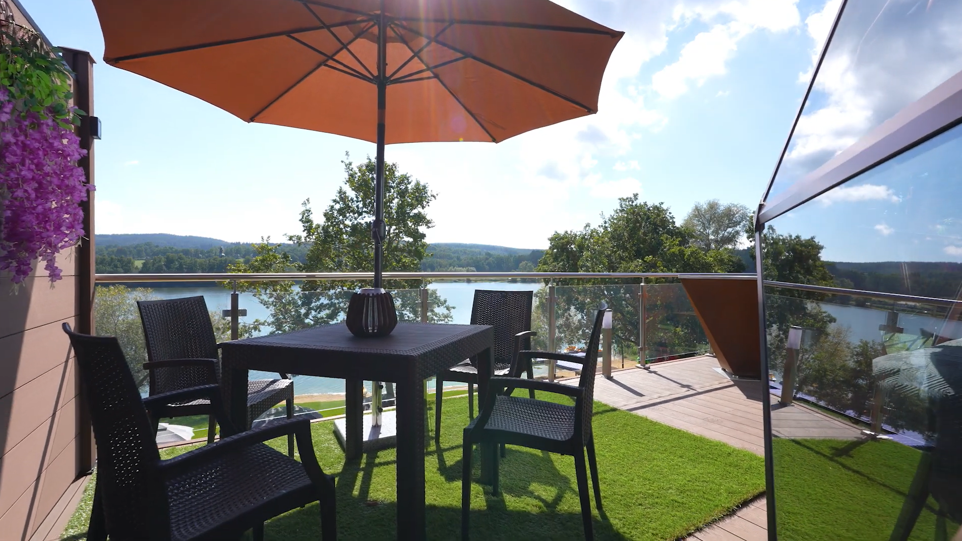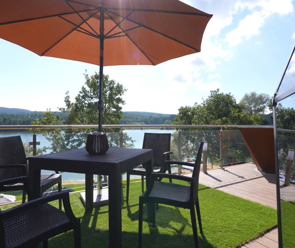 Posezení na terase pod slunečníkem