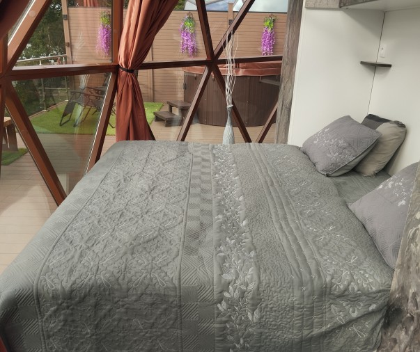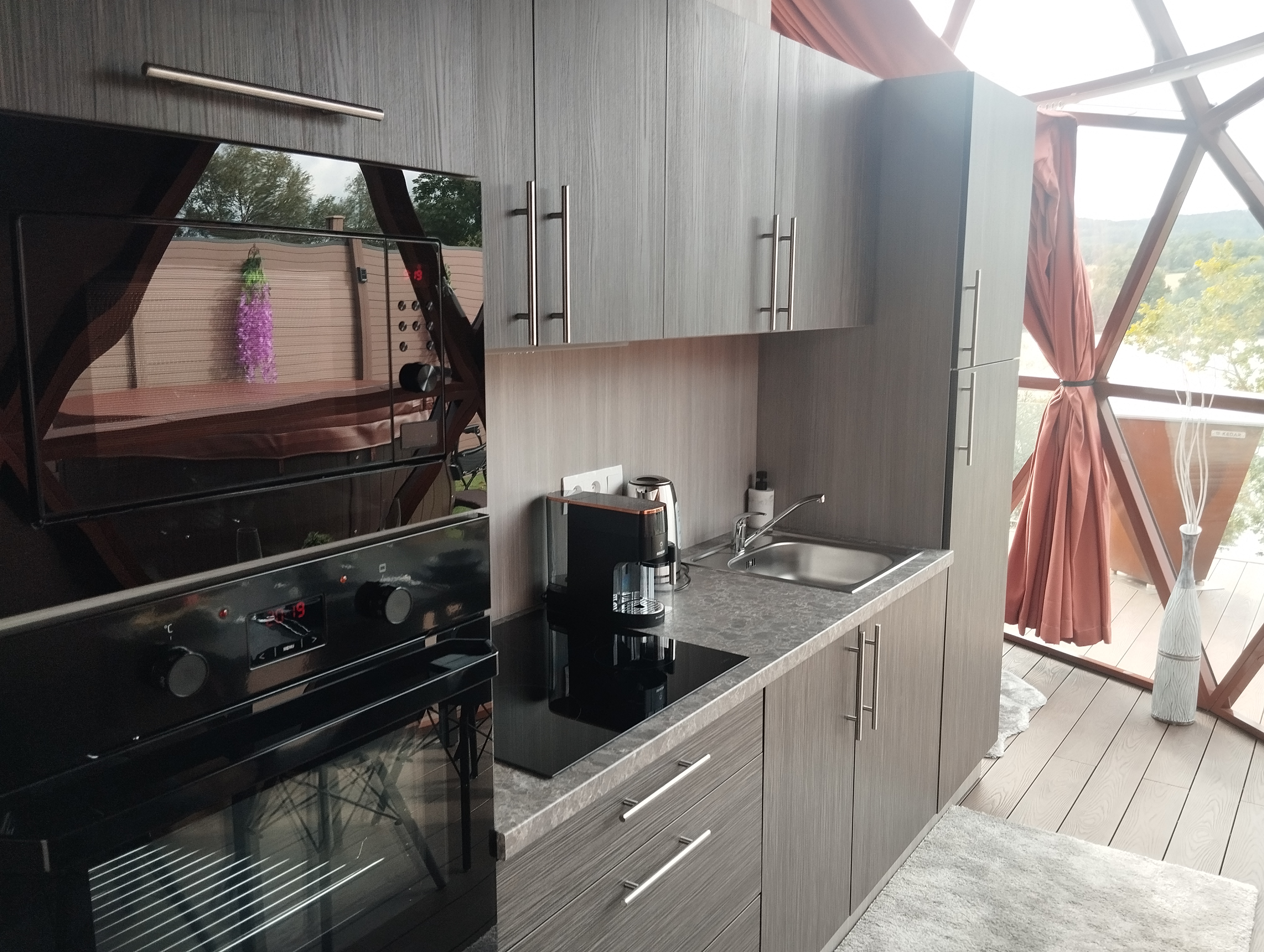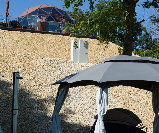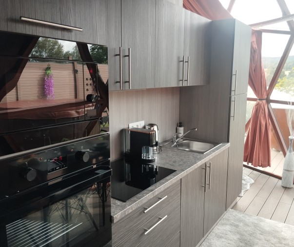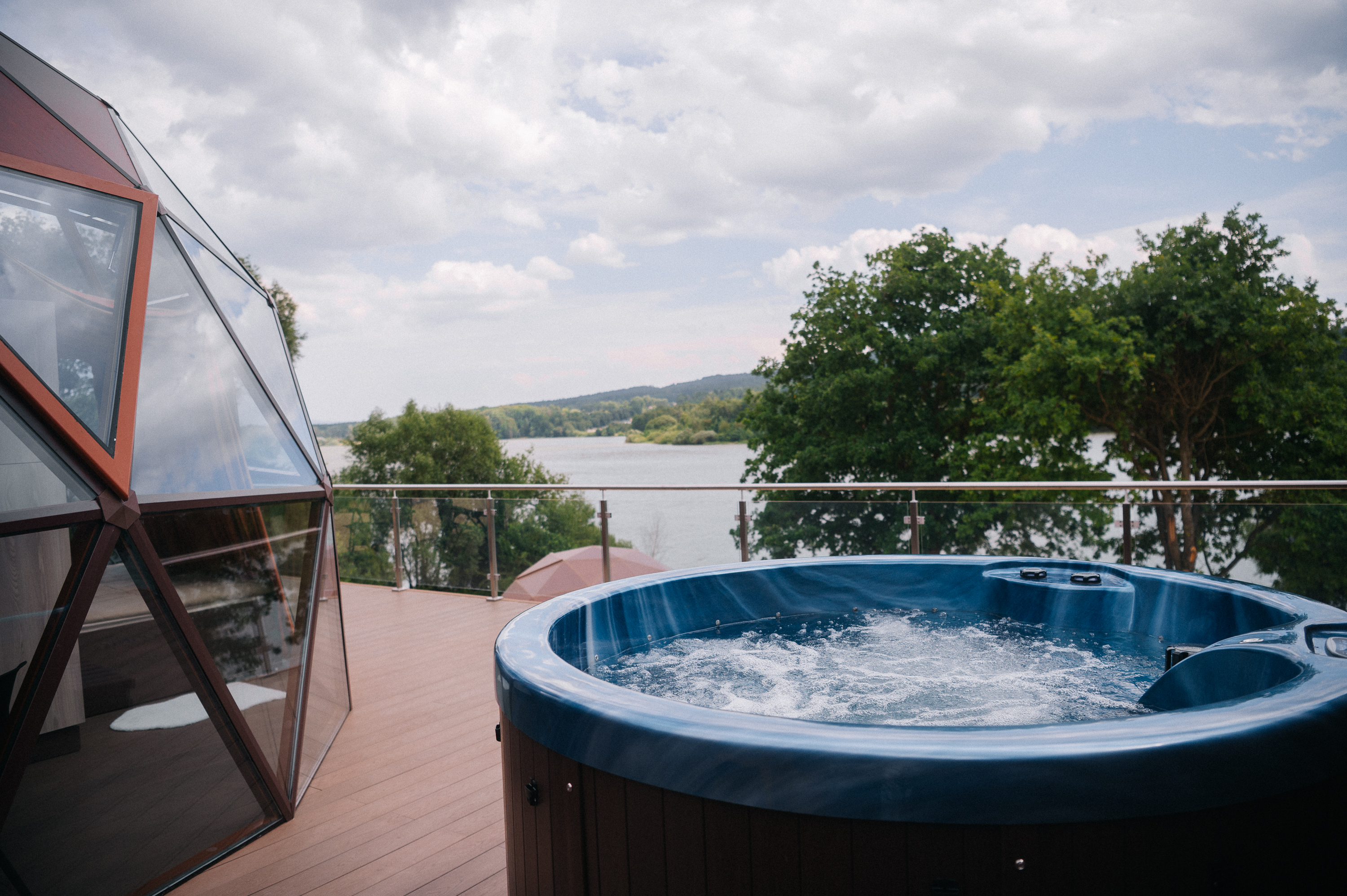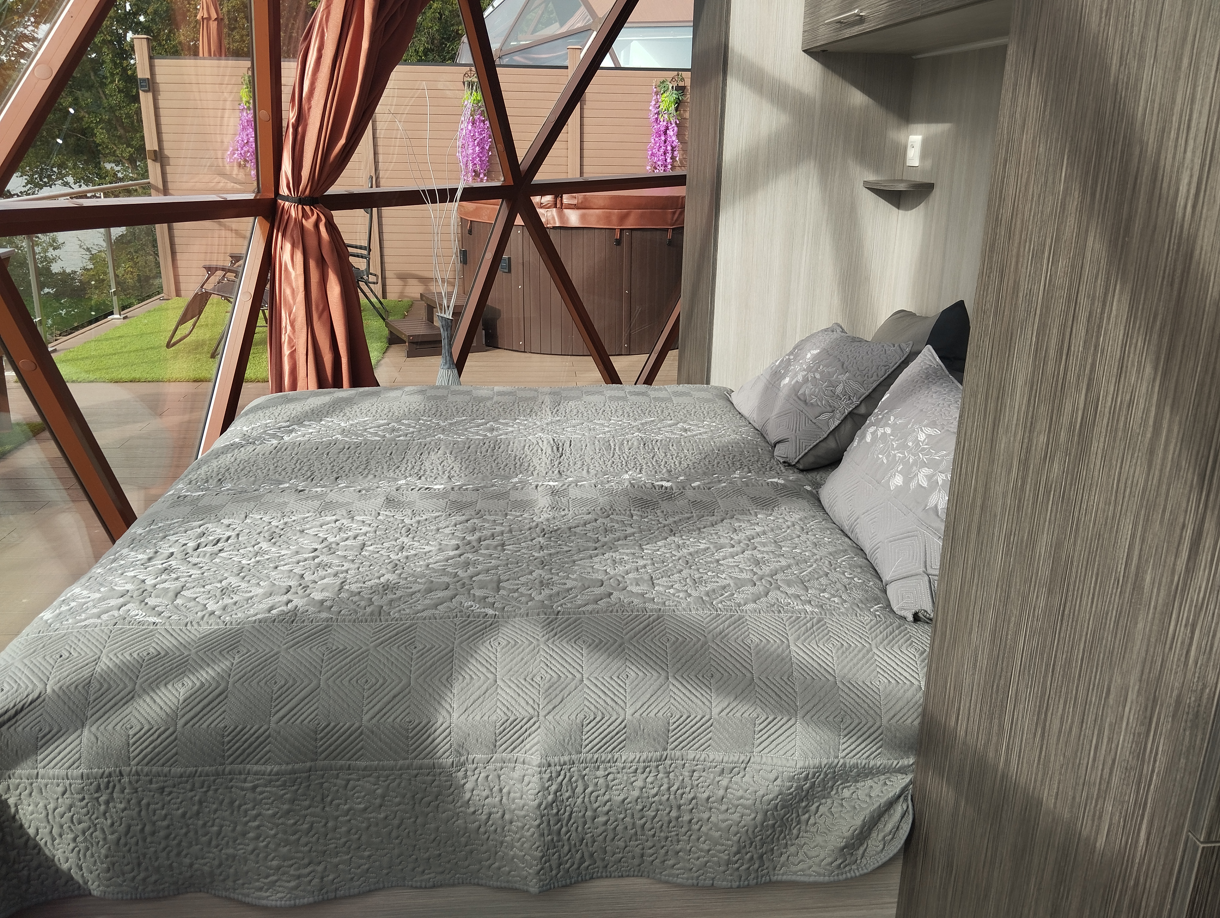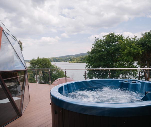 Glampingový dům s terasou, privátní vířivkou, saunou a grilem Kedar.