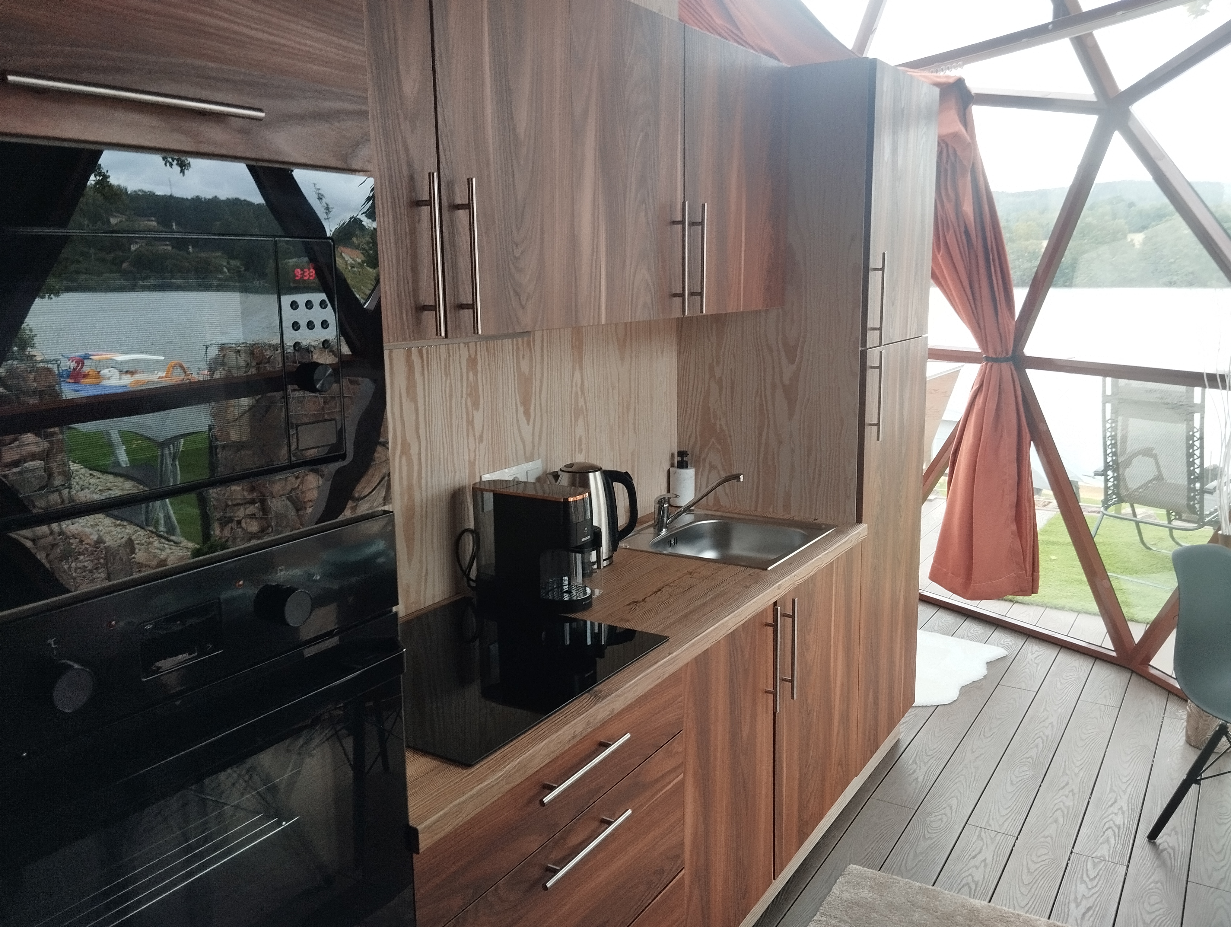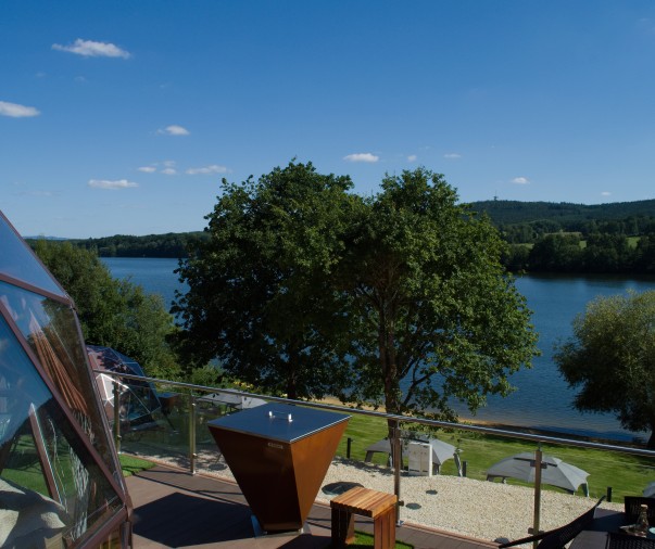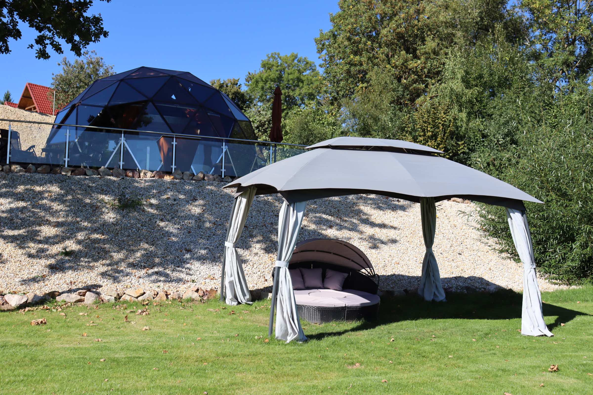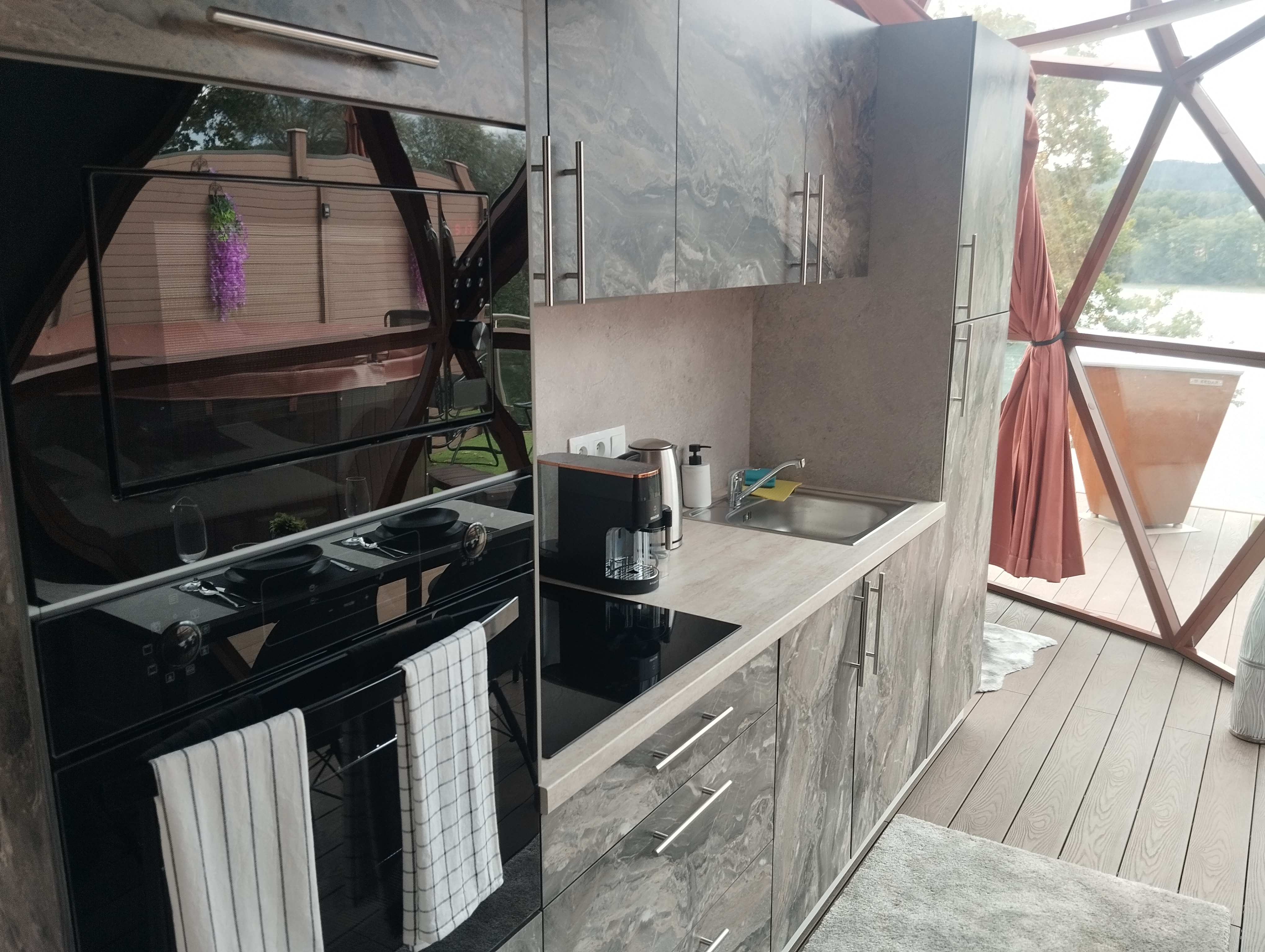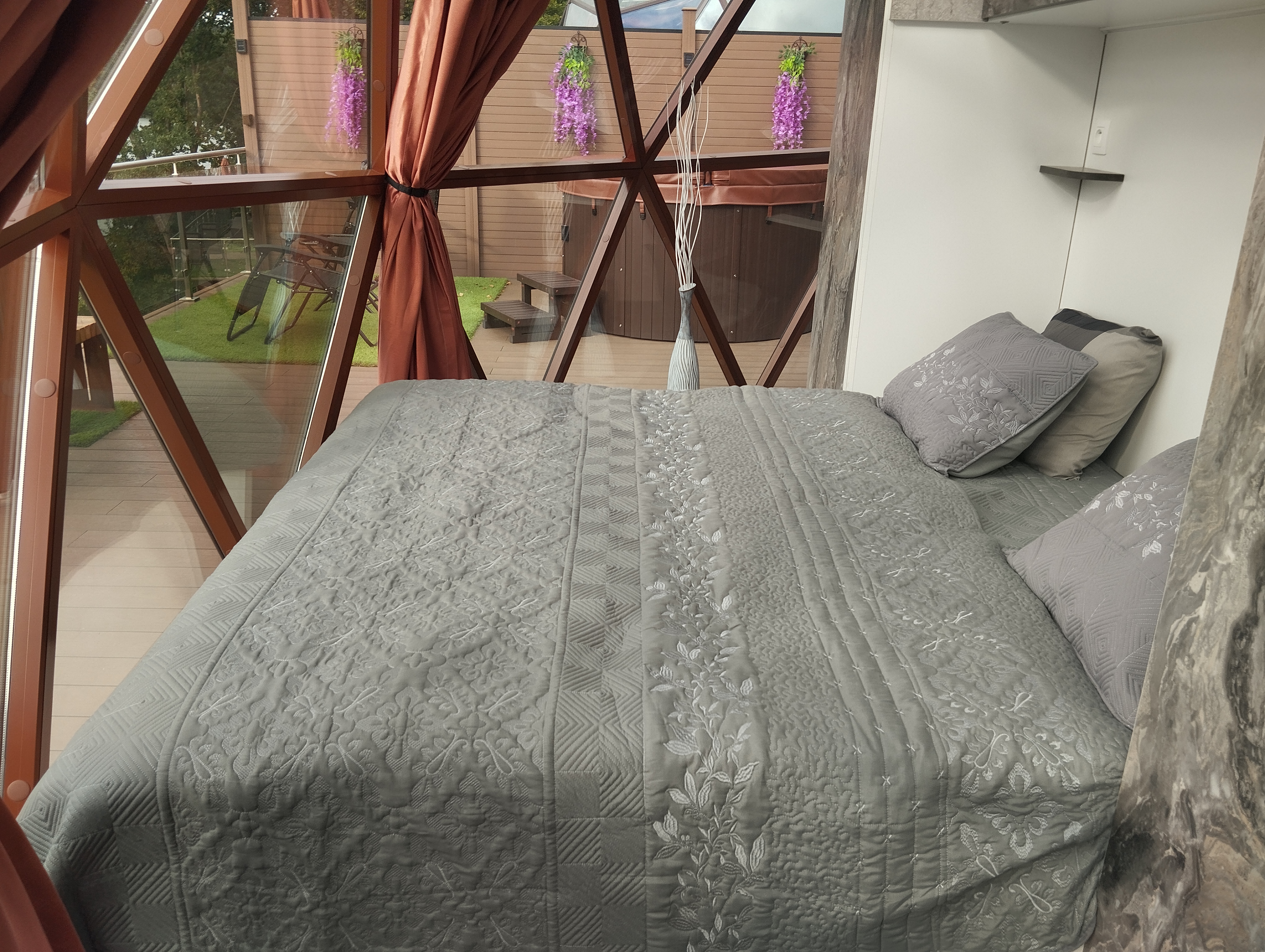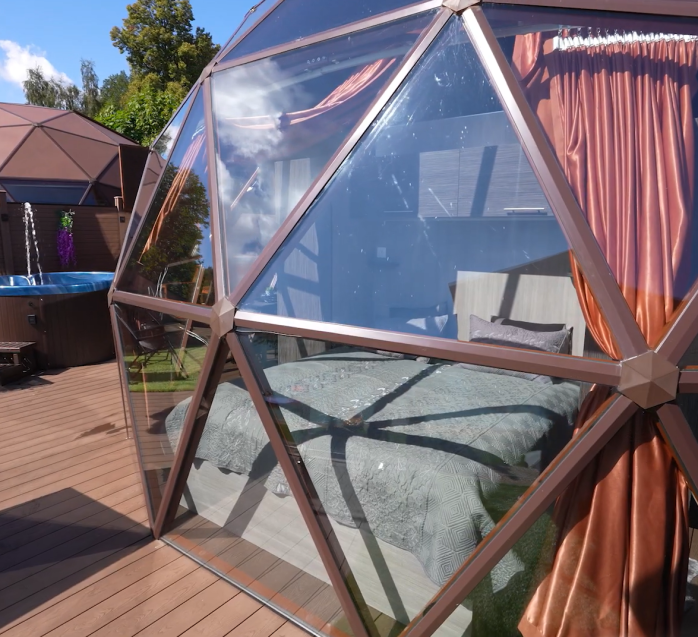 Glampingový dům s terasou, privátní vířivkou, saunou a grilem Kedar.