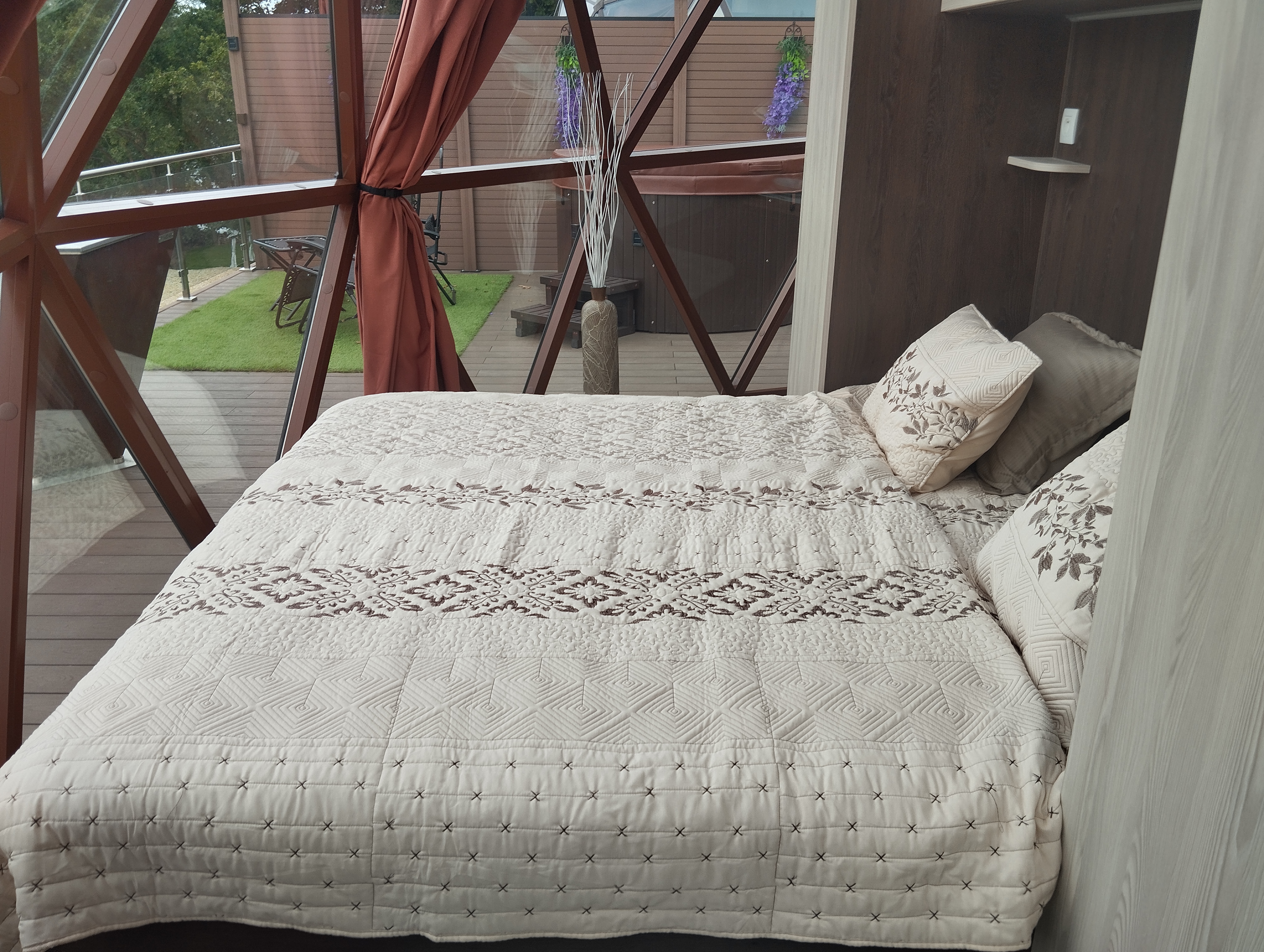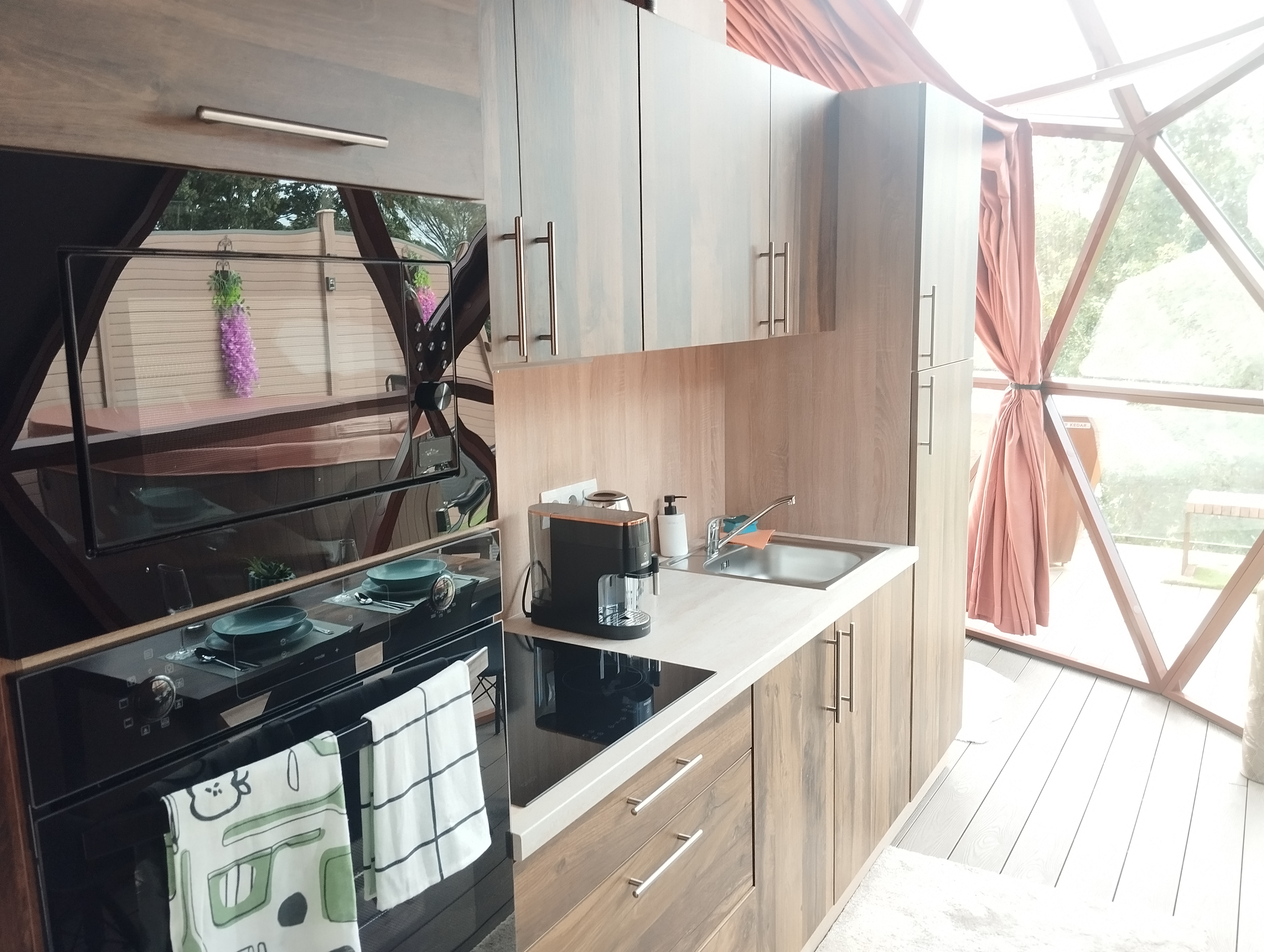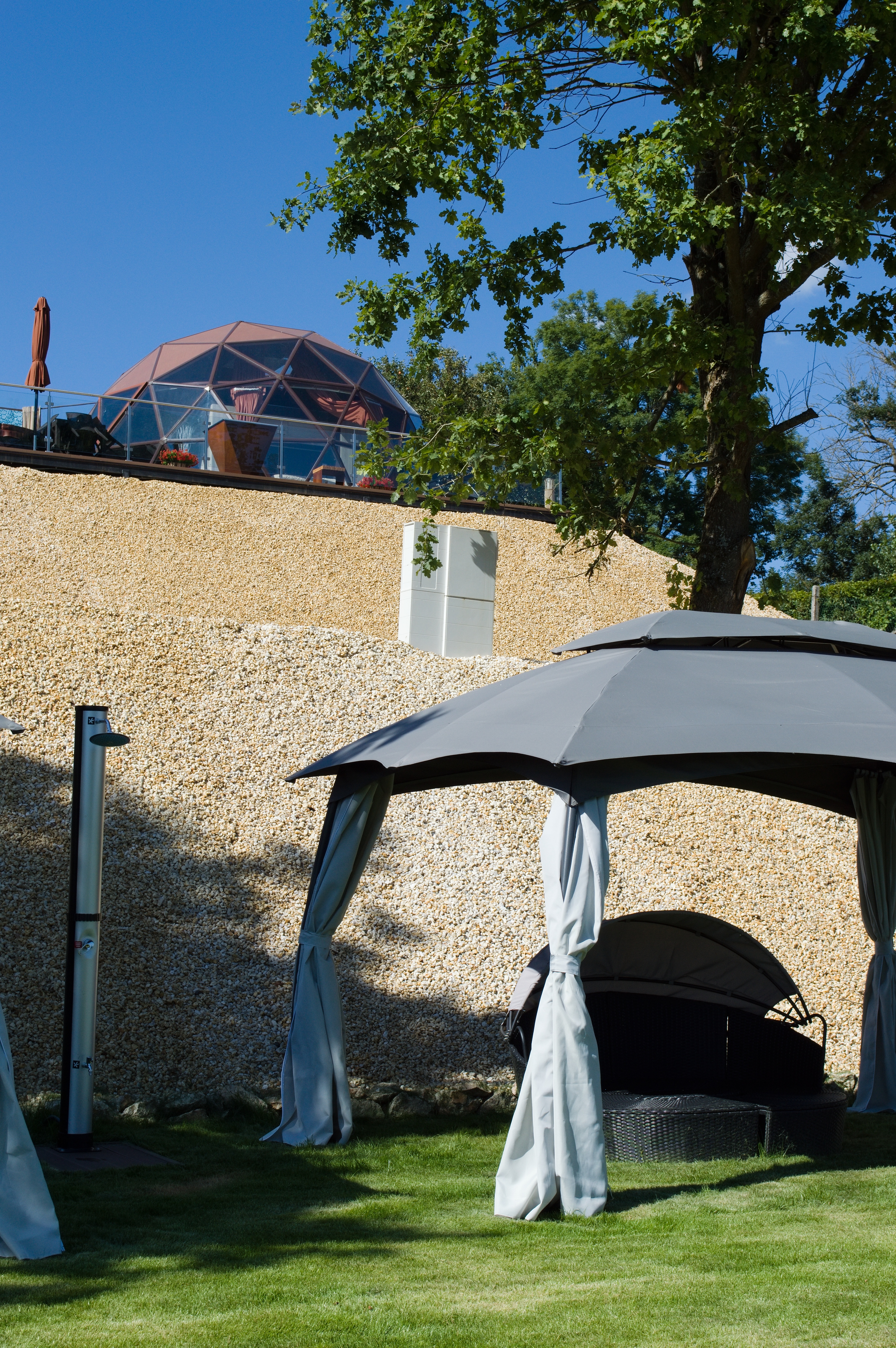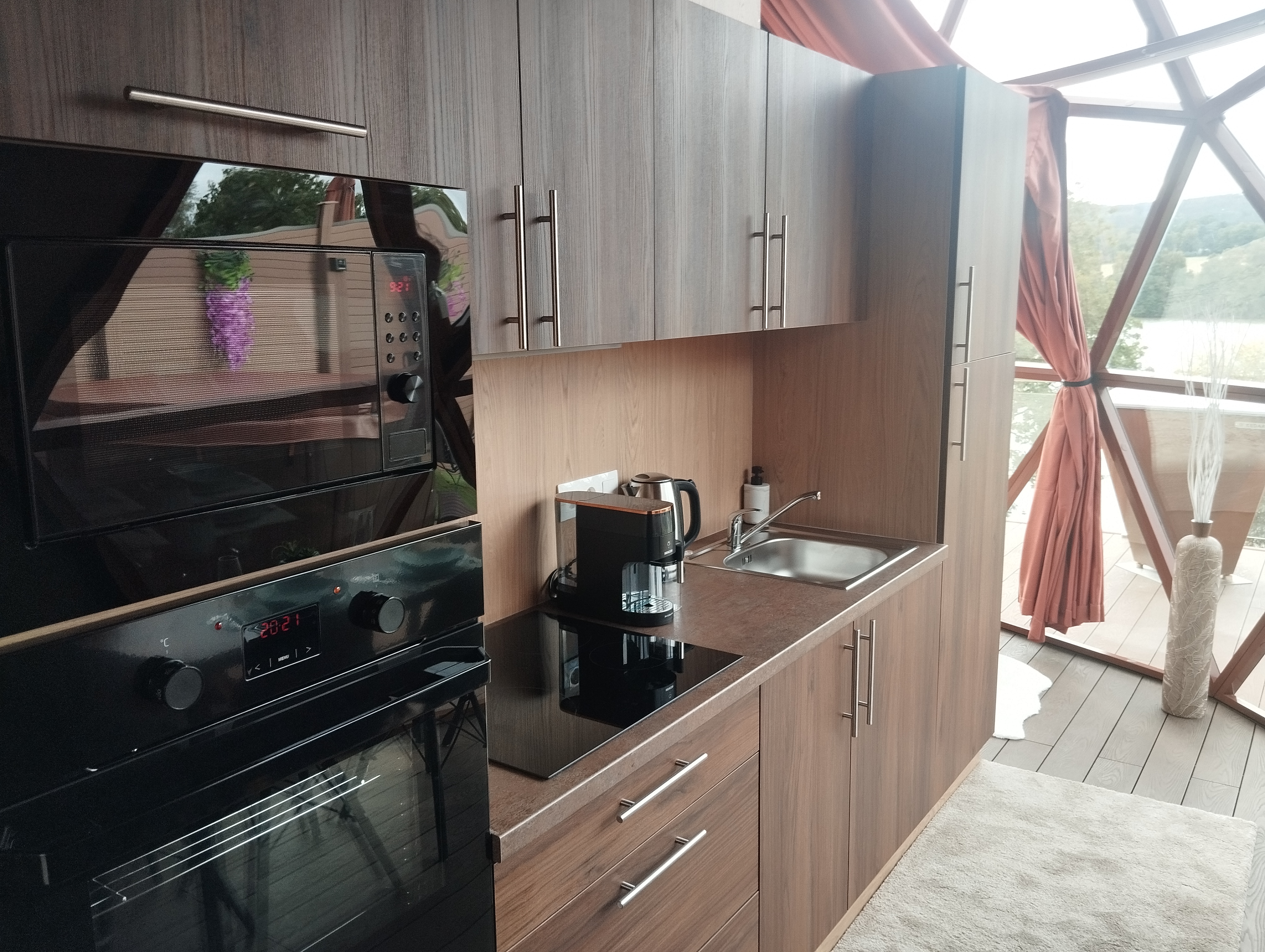 Glampingový dům s terasou, privátní vířivkou, saunou a grilem Kedar.