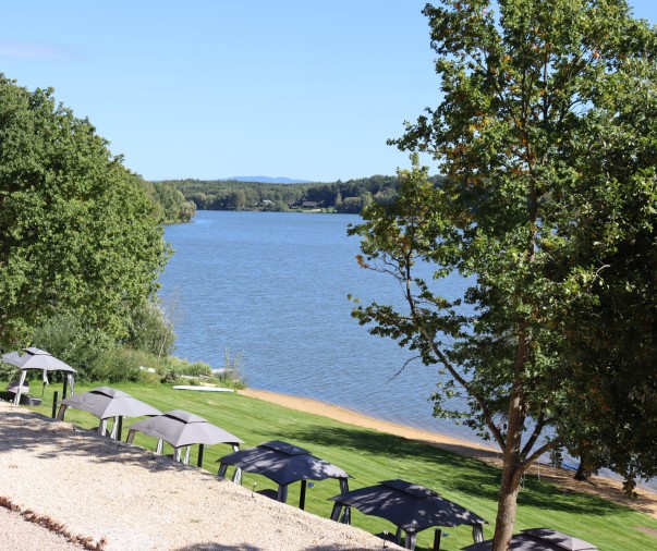 Zažijte kouzlo glampingu u přehrady. Privátní altány a relaxační lehátka na travnaté pláži, osvěžující solární sprchy, přímý a pozvolný vstup do přehrady z písečné části pláže, radost z elektrických loděk a tematických šlapadel, to vše na Vás čeká v oáze klidu a zábavy.