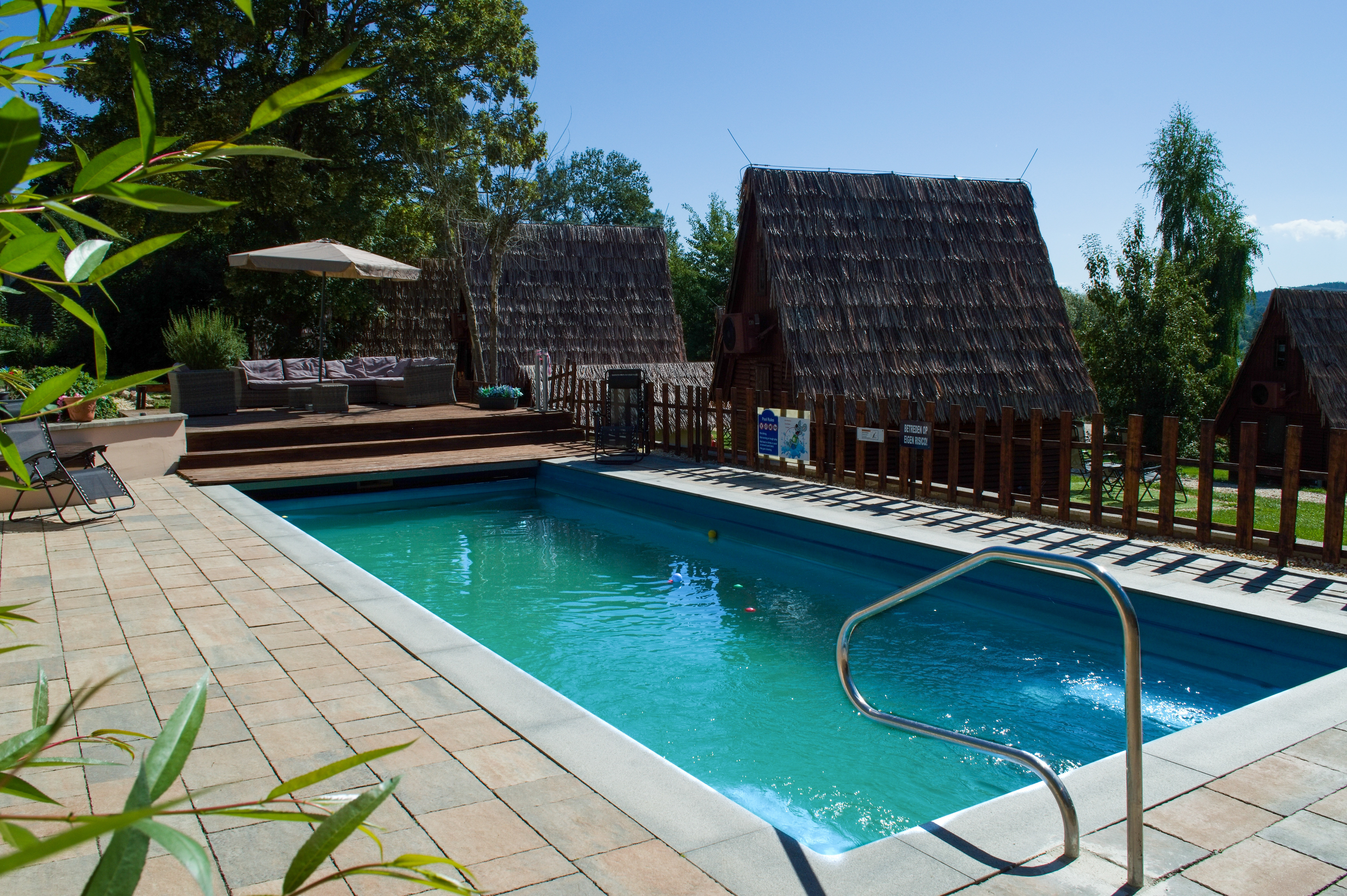 Koupání na pláži nebo u bazénu. Půjčovna malých plavidel.