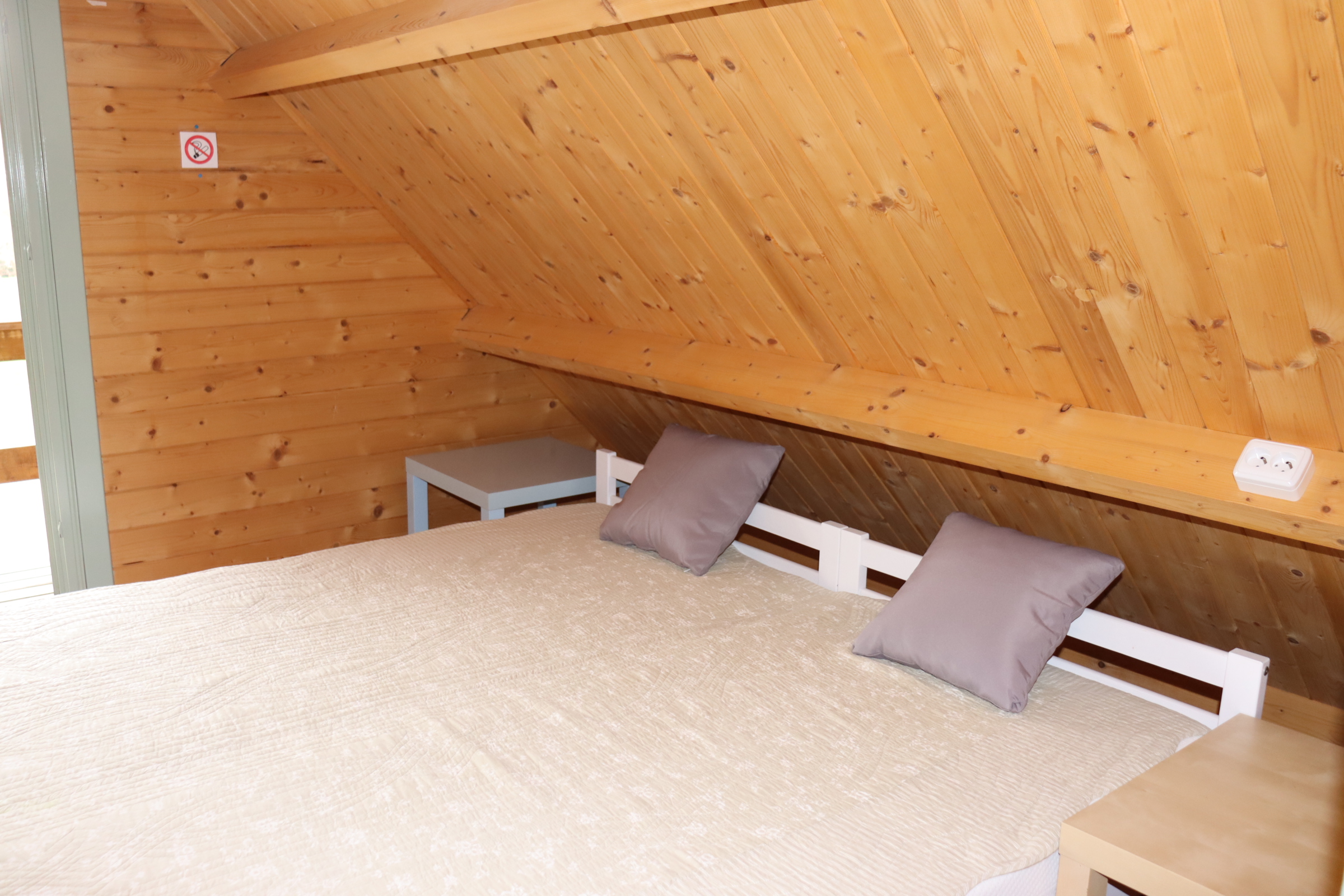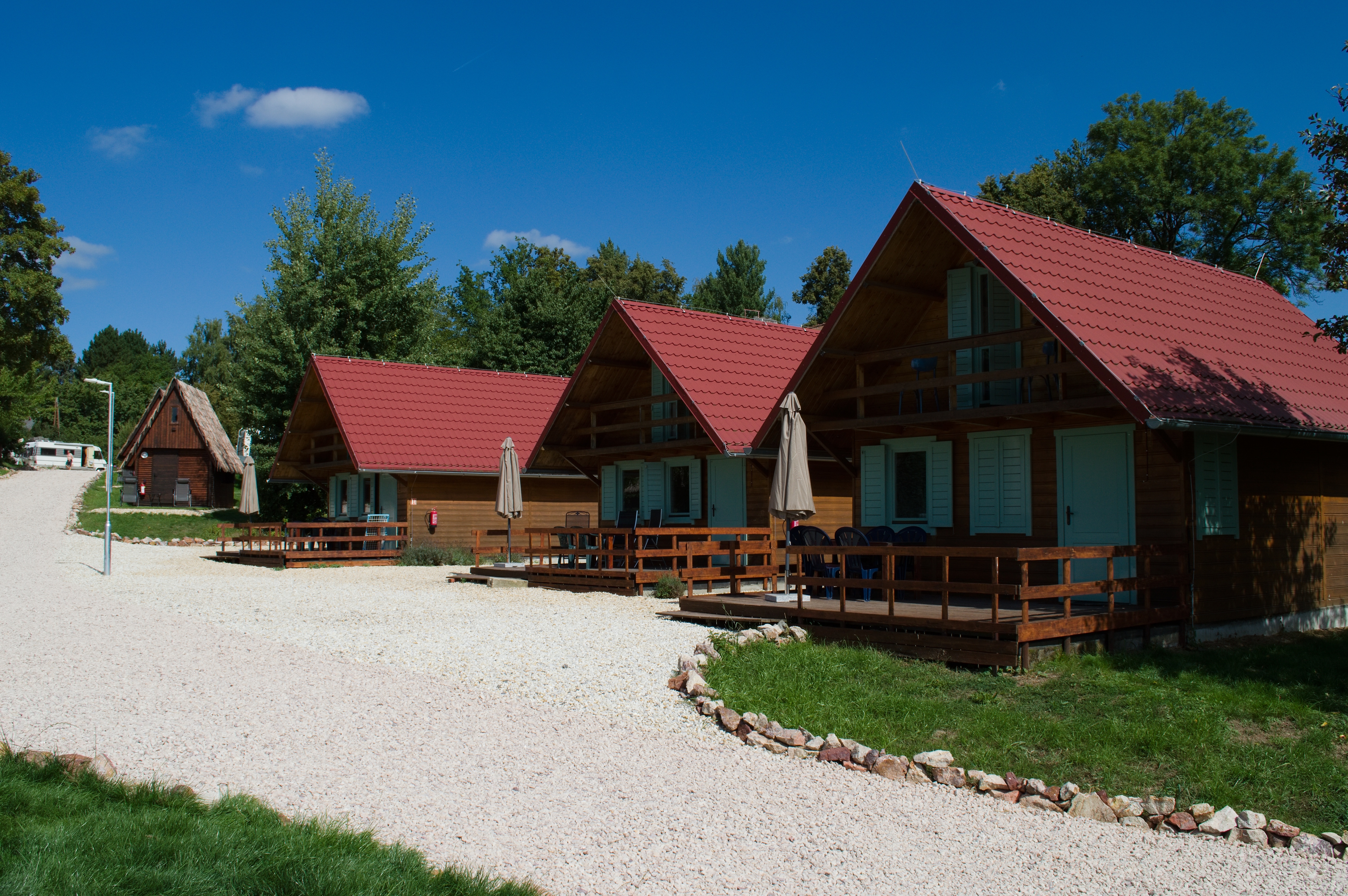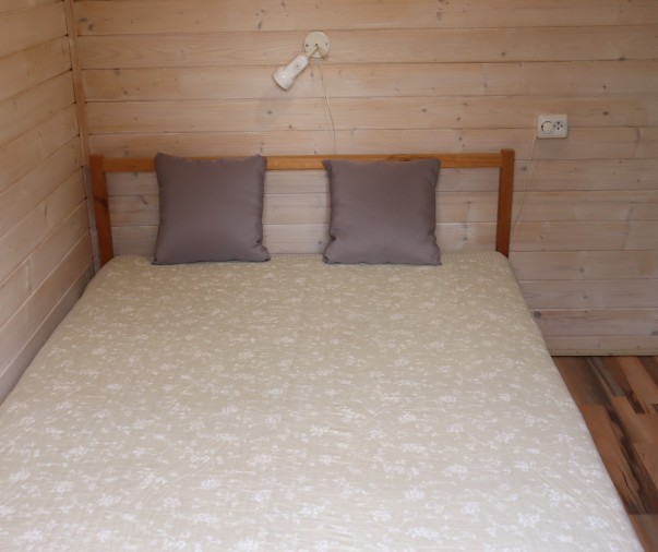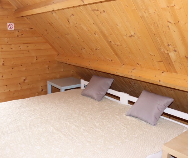 Útulná dřevěná rekreační chata s terasou, vlastní kuchyní, koupelnou a třemi ložnicemi