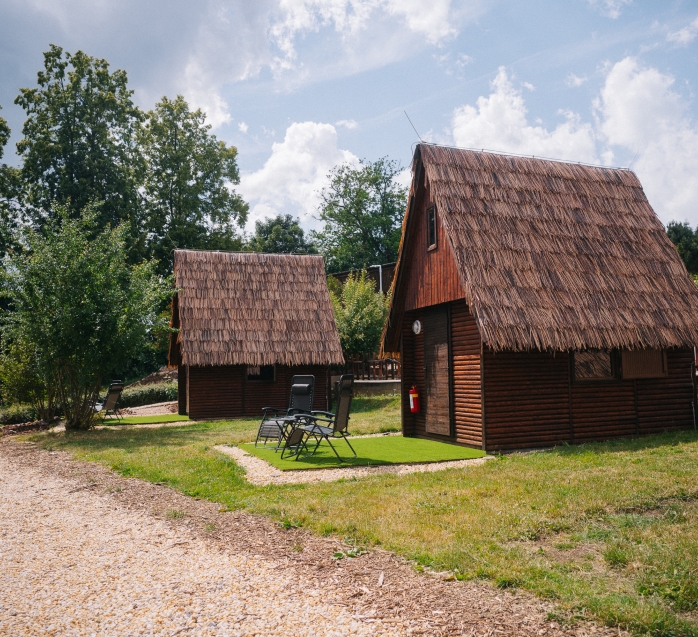 Vybavení tematických chatek je přizpůsobeno jednoduchému stylu kempování